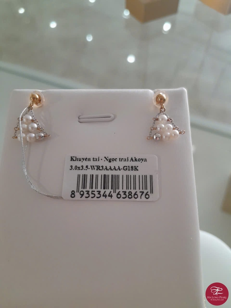 1. Tên sản phẩm: Khuyên tai ngọc trai Akoya 66A304G024* (5v) 2. Xuất xứ: Việt Nam. 3. Thành phần - Ngọc trai Akoya - Đai sản phẩm: Vàng 18K 4. Thông số: - Kích thước: 3.0x3.5 mm - Màu sắc: Trắng - Hình dạng: Tròn - Chất lượng viên ngọc: Chất lượng AAAA - Đai sản phẩm: Vàng 18K