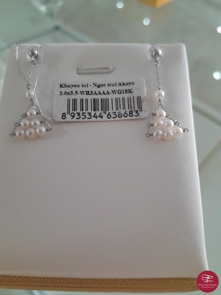 1. Tên sản phẩm: Khuyên tai ngọc trai Akoya 66A304G025* (7v) 2. Xuất xứ: Việt Nam. 3. Thành phần - Ngọc trai Akoya - Đai sản phẩm: Vàng trắng 18K 4. Thông số: - Kích thước: 3.0x3.5 mm - Màu sắc: Trắng - Hình dạng: Tròn - Chất lượng viên ngọc: Chất lượng AAAA - Đai sản phẩm: Vàng trắng 18K