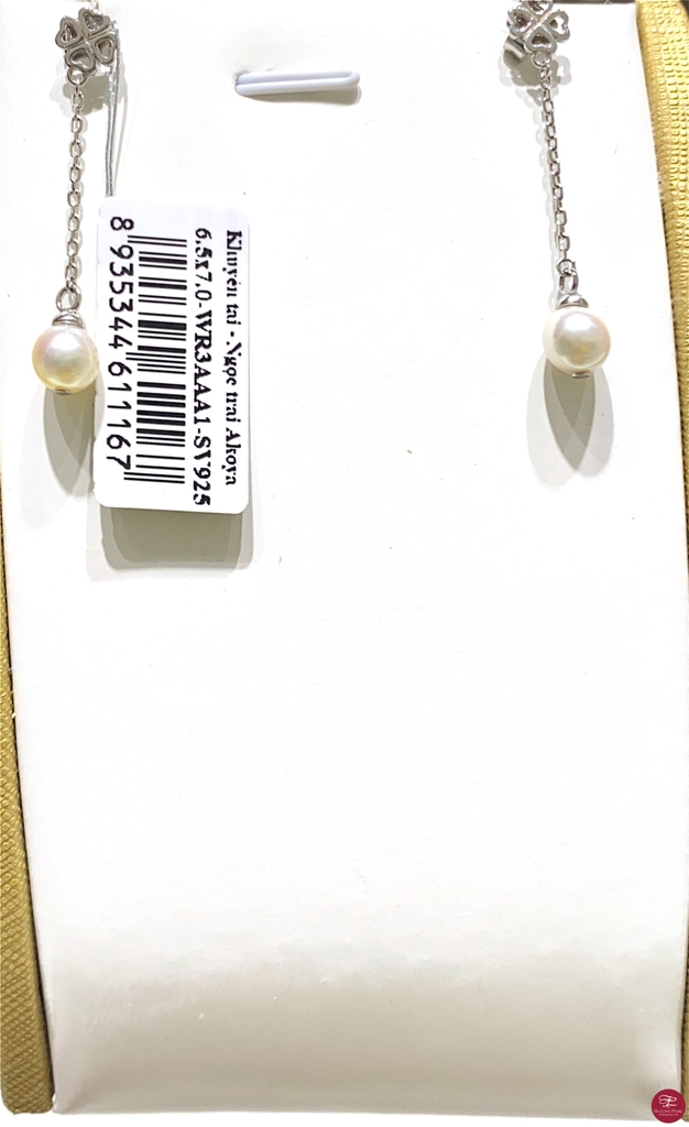 1. Tên sản phẩm: Khuyên tai ngọc trai Akoya 66A653S020 (Đ.40) 2. Xuất xứ: Việt Nam. 3. Thành phần - Ngọc trai Akoya - Đai sản phẩm: Bạc 925 4. Thông số: - Kích thước: 6.5x7.0 mm - Màu sắc: Trắng - Hình dạng: Tròn - Chất lượng viên ngọc: Chất lượng AAA - Đai sản phẩm: Bạc 925