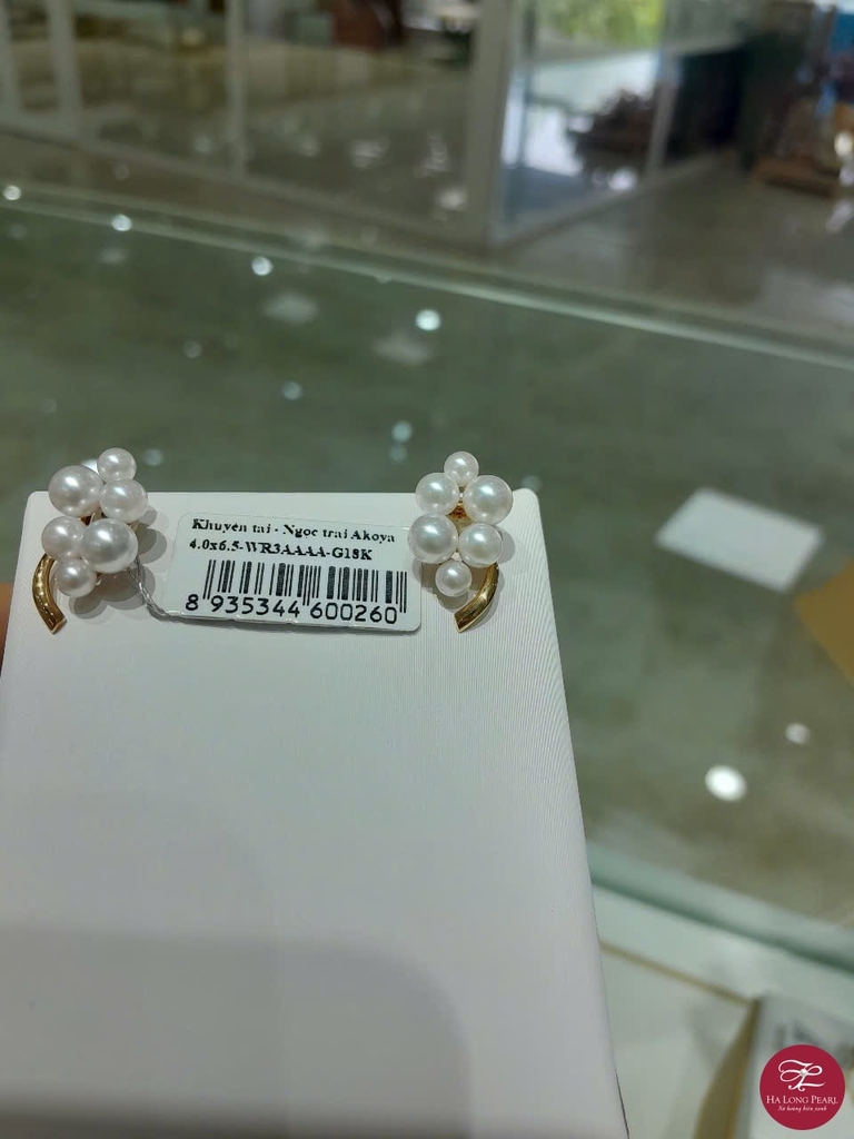 1. Tên sản phẩm: Khuyên tai ngọc trai Akoya 66A654G015* (6v) 2. Xuất xứ: Việt Nam. 3. Thành phần - Ngọc trai Akoya - Đai sản phẩm: Vàng 18K 4. Thông số: - Kích thước: 4.0x6.5 mm - Màu sắc: Trắng - Hình dạng: Tròn - Chất lượng viên ngọc: Chất lượng AAAA - Đai sản phẩm: Vàng 18K