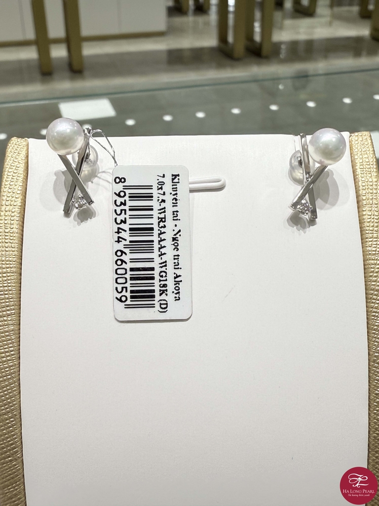 1. Tên sản phẩm: Khuyên tai ngọc trai Akoya 66A704G027* 2. Xuất xứ: Việt Nam. 3. Thành phần - Ngọc trai Akoya - Đai sản phẩm: Vàng trắng 18K và đá nhân tạo 4. Thông số: - Kích thước: 7.0x7.5 mm - Màu sắc: Trắng - Hình dạng: Tròn - Chất lượng viên ngọc: Chất lượng AAAA - Đai sản phẩm: Vàng trắng 18K và đá nhân tạo