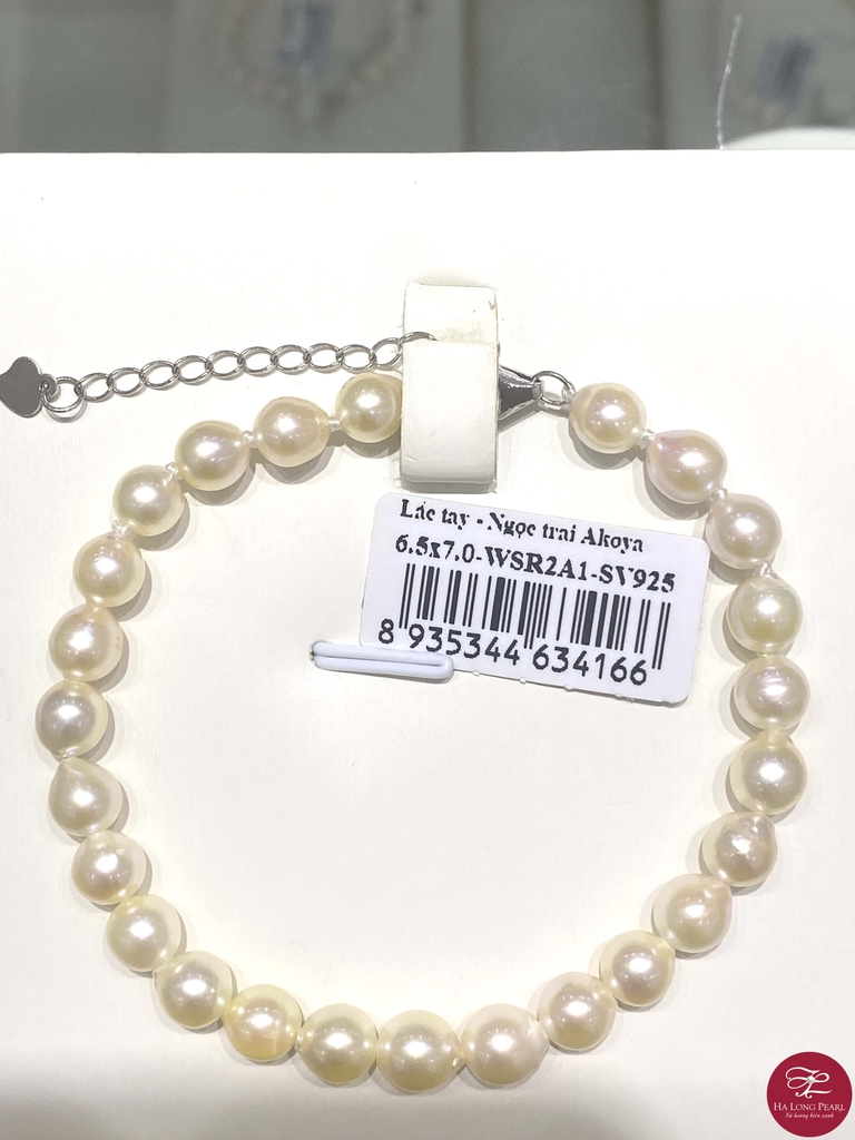 1. Tên sản phẩm: Lắc tay ngọc trai Akoya 62A651S025 2. Xuất xứ: Việt Nam. 3. Thành phần - Ngọc trai Akoya - Đai sản phẩm: Bạc 925 4. Thông số: - Kích thước: 6.5x7.0 mm - Màu sắc: Trắng - Hình dạng: Gần tròn - Chất lượng viên ngọc: Chất lượng A - Đai sản phẩm: Bạc 925