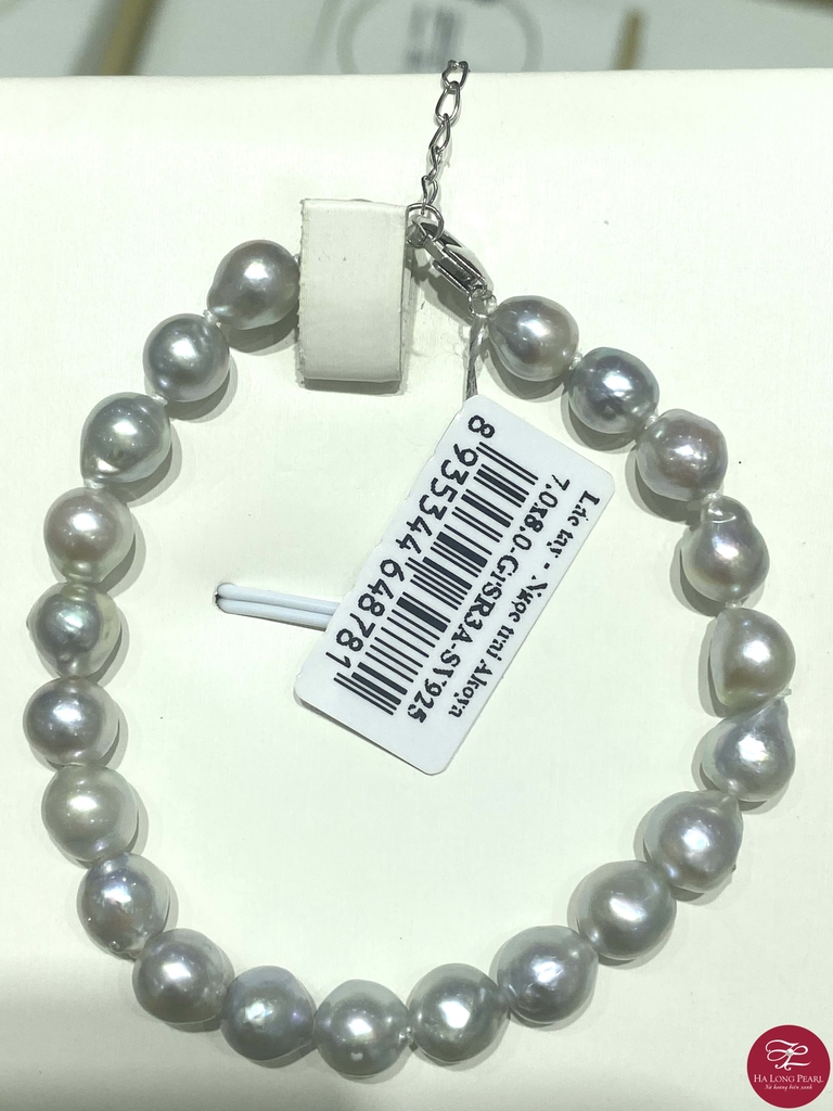 1. Tên sản phẩm: Lắc tay ngọc trai Akoya 62A701S018 2. Xuất xứ: Việt Nam. 3. Thành phần - Ngọc trai Akoya - Đai sản phẩm: Bạc 925 4. Thông số: - Kích thước: 7.0x8.0 mm - Màu sắc: Xám - Hình dạng: Tròn - Chất lượng viên ngọc: Chất lượng A - Đai sản phẩm: Bạc 925