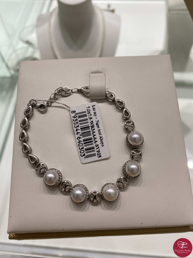 1. Tên sản phẩm: Lắc tay ngọc trai Akoya 62A704S003 (Đ.100-5v) 2. Xuất xứ: Việt Nam. 3. Thành phần - Ngọc trai Akoya - Đai sản phẩm: Bạc 925 4. Thông số: - Kích thước: 7.0x7.5 mm - Màu sắc: Trắng - Hình dạng: Tròn - Chất lượng viên ngọc: Chất lượng AAAA - Đai sản phẩm: Bạc 925