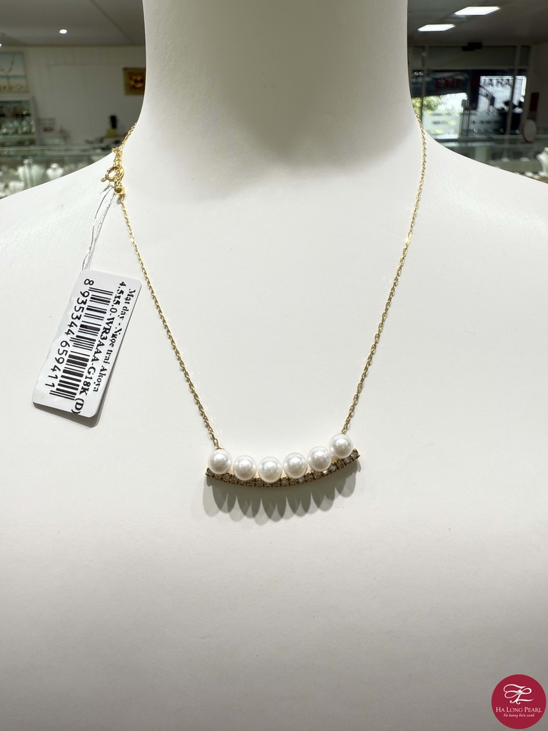 1. Tên sản phẩm: Mặt dây ngọc trai Akoya 64A453G007* 2. Xuất xứ: Việt Nam. 3. Thành phần - Ngọc trai Akoya - Đai sản phẩm: Vàng 18K 4. Thông số: - Kích thước: 4.5x5.0 mm - Màu sắc: Trắng - Hình dạng: Tròn - Chất lượng viên ngọc: Chất lượng AAA - Đai sản phẩm: Vàng 18K