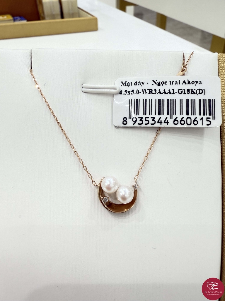 1. Tên sản phẩm: Mặt dây ngọc trai Akoya 64A453G012* (2v kèm dây) 2. Xuất xứ: Việt Nam. 3. Thành phần - Ngọc trai Akoya - Đai sản phẩm: Vàng 18K và đá nhân tạo 4. Thông số: - Kích thước: 4.5x5.0 mm - Màu sắc: Trắng - Hình dạng: Tròn - Chất lượng viên ngọc: Chất lượng AAA - Đai sản phẩm: Vàng 18K và đá nhân tạo