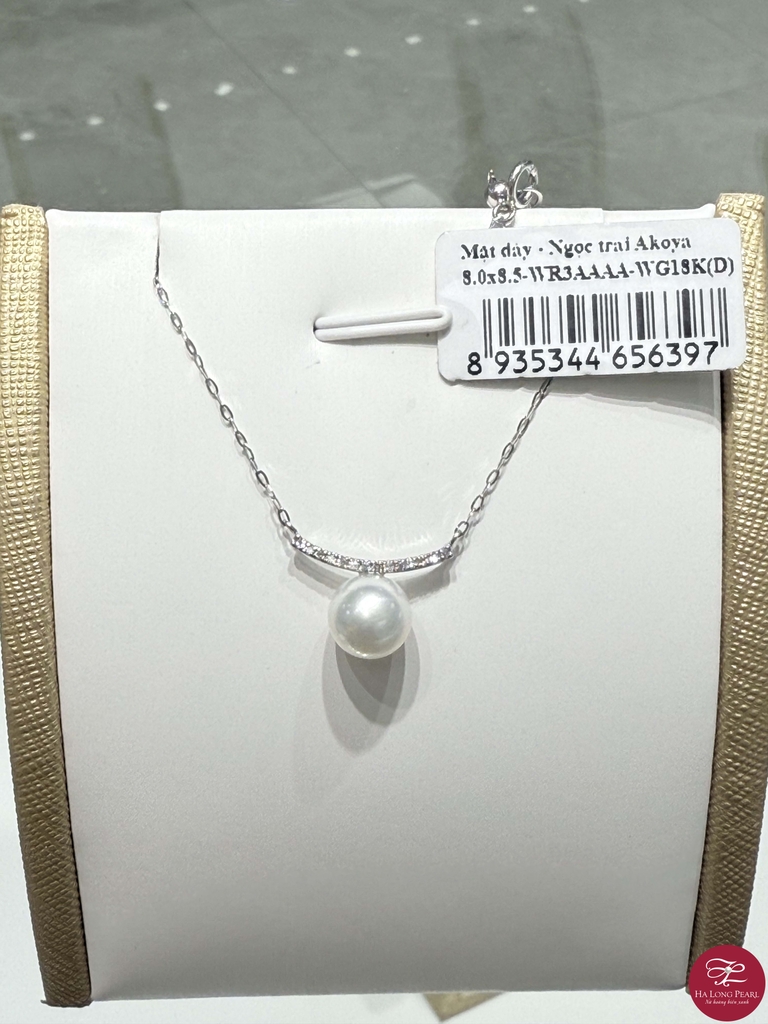 1. Tên sản phẩm: Mặt dây ngọc trai Akoya 64A804G098* 2. Xuất xứ: Việt Nam. 3. Thành phần - Ngọc trai Akoya - Đai sản phẩm: Vàng trắng 18K và đá nhân tạo 4. Thông số: - Kích thước: 8.0x8.5 mm - Màu sắc: Trắng - Hình dạng: Tròn - Chất lượng viên ngọc: Chất lượng AAAA - Đai sản phẩm: Vàng trắng 18K và đá nhân tạo